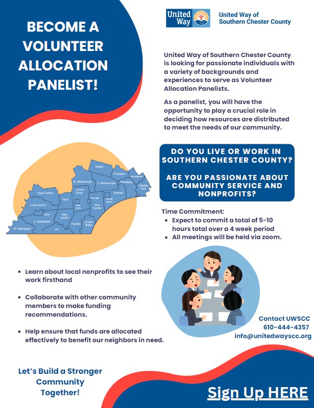 At United Way of Southern Chester County, there are a couple ways you can volunteer your time and talent to help the community.