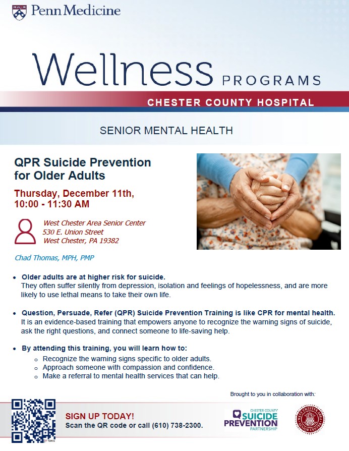 SIGN UP TODAY! Click on the event title above, scan the QR code on the attached flyer (for printed distribution only), or call (610) 738-2300.